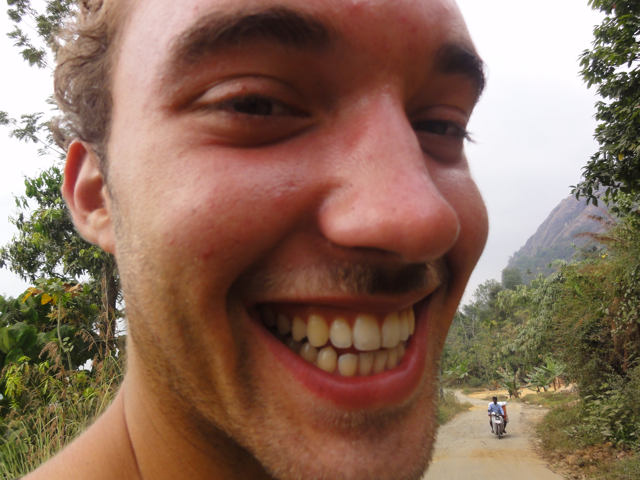 We headed for a place called Anakullam, which is a really small village down in a valley, and it’s famous for wild elephants that come after dark. We drove on a terrible road there, most of it felt like off-road, through the tea plantations, which was very beautiful. But the highlight was when we went out of the plantations into the rainforest. Waterfalls, huge trees and the mountains, the fresh air… it was amazing.