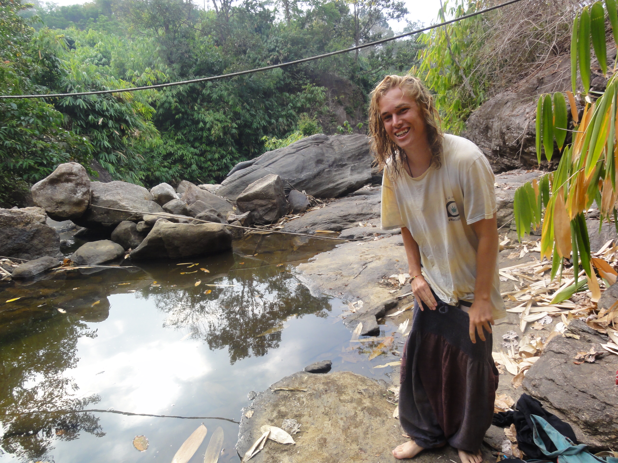 At the end of the road in Anakullam we found a small waterfall with a little pond where we swam and ate fresh pineapple and coconut. It felt great so swim in clean water, where we could follow the path of the water from the top of the mountain to our little sanctuary, away from heavy traffic and careless tourists.