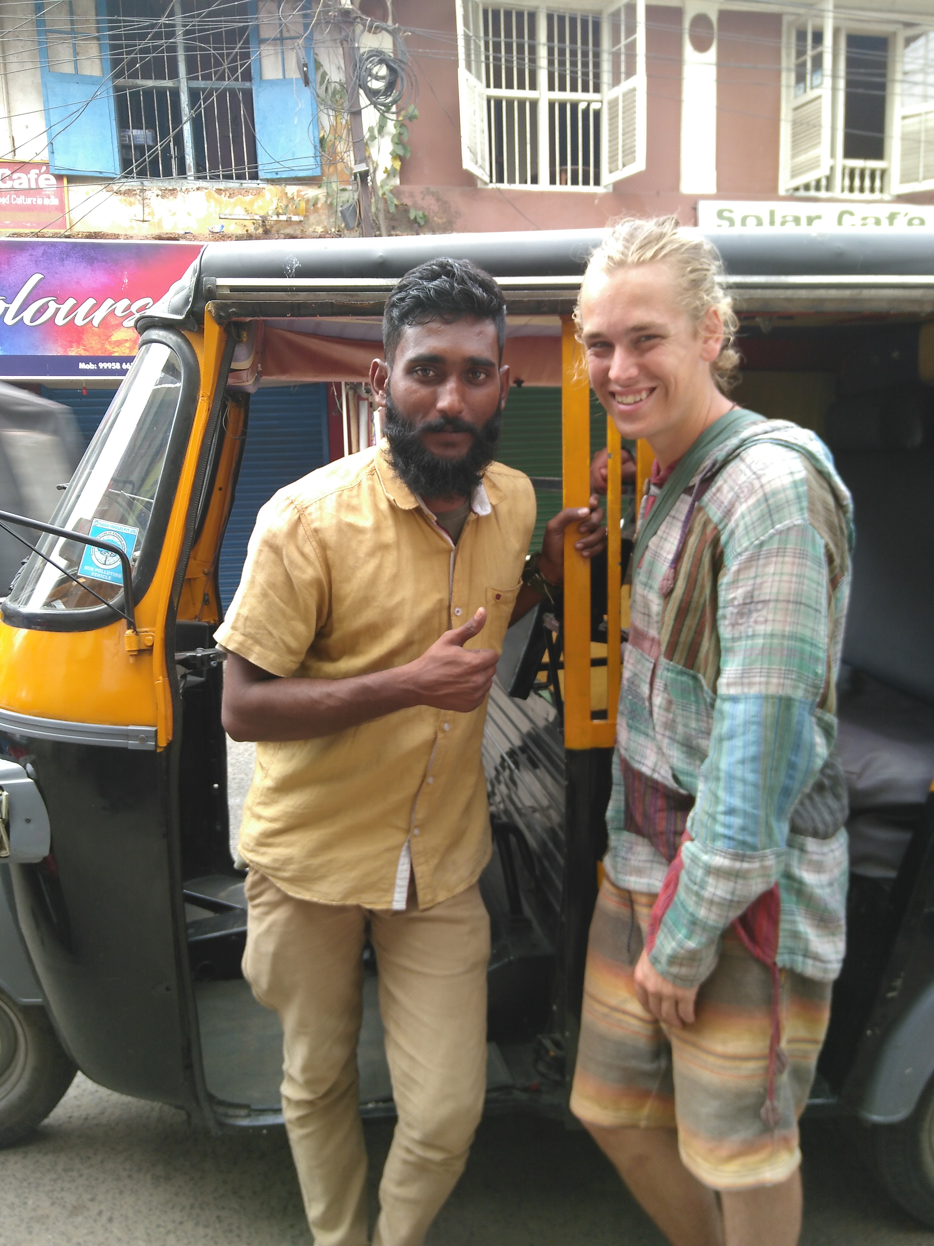 The ferry takes about 20 min and we start walking towards our hostel. We stay in a place called Seashore residency on a cute portugese street with expensive cafés lining the way. When we enter the place the guy at the counter, Zulfiq (who later becomes our friend) shows us a room with a basement vibe. The first thing I see after the double bed is a huge spider running into the corner next to the bathroom door. It is a slender spider, but it coves the whole corner! I yell “Don’t kill it, don’t kill it!” to Zulfiq who is going after the spider, so it escapes and runs under the bed. Zulfiq raises his hands and his sholders in a “there is nothing I can do” way and we stand there in silence for a few seconds until we go and check in. After check in August says he is not going back into that room. Zulfiq shows us another room one story up which is way nicer. It has windows but lacks a bathroom, but the shared facilities are clean and well lit. So August sends me in to get our bags, because he was serious about not going back into that room. The spider, with legs and all, were as big as my hand, stretched out, so I have some understanding for why he reacted like this 😛
