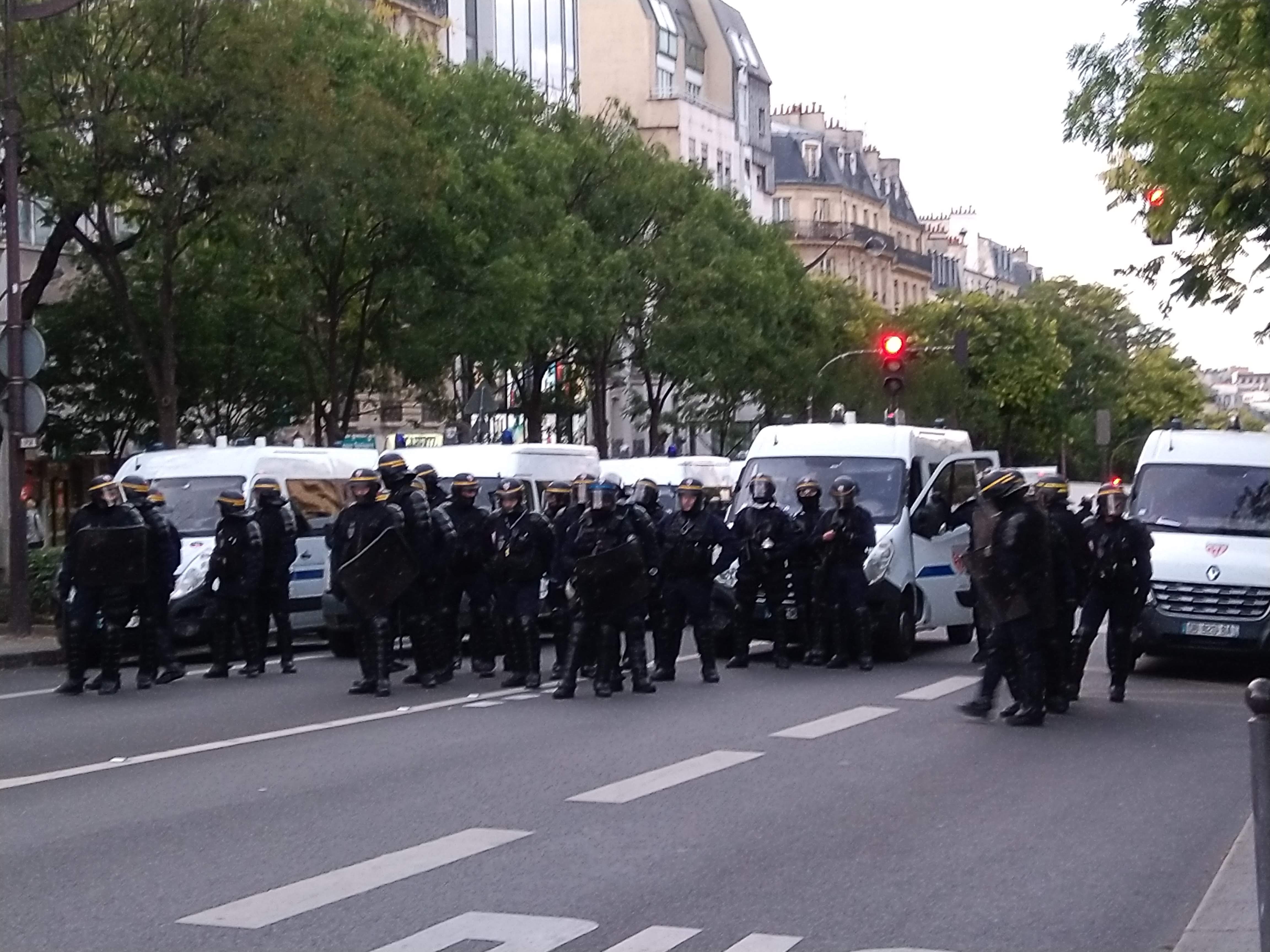 The goal of the action was to block Yara’s factory, to prevent them from doing business as usual, to disturb their production a little, and show the world that this is an issue to start caring about. Our affinity group consisted of Sasha and Sabine, Mats and Oscar and Lina. It was a good group. We were in the blue finger. We started the march of six km to the factory at 9 in the morning. We had an enormous police escort but they were nice. They drove slowly after us when we marched, and at one point I had to tie my boots and fell behind the group. The convoy of police vans stopped to let me tie my boots and then to catch up with my group. It was good that they were so nice, because I think there were more police than protesters. I have never seen so many police in one place in my life!